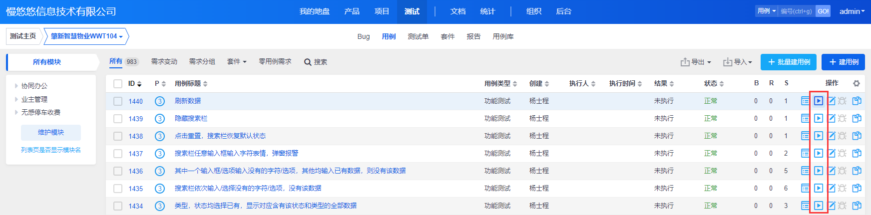 ① 进入【测试】→【用例】→【执行按钮】,即可执行当前用例:
