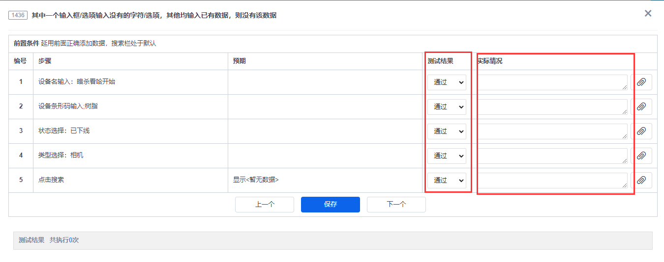 ② 选择【测试结果】和【实际情况】,点击【保存】即可:
