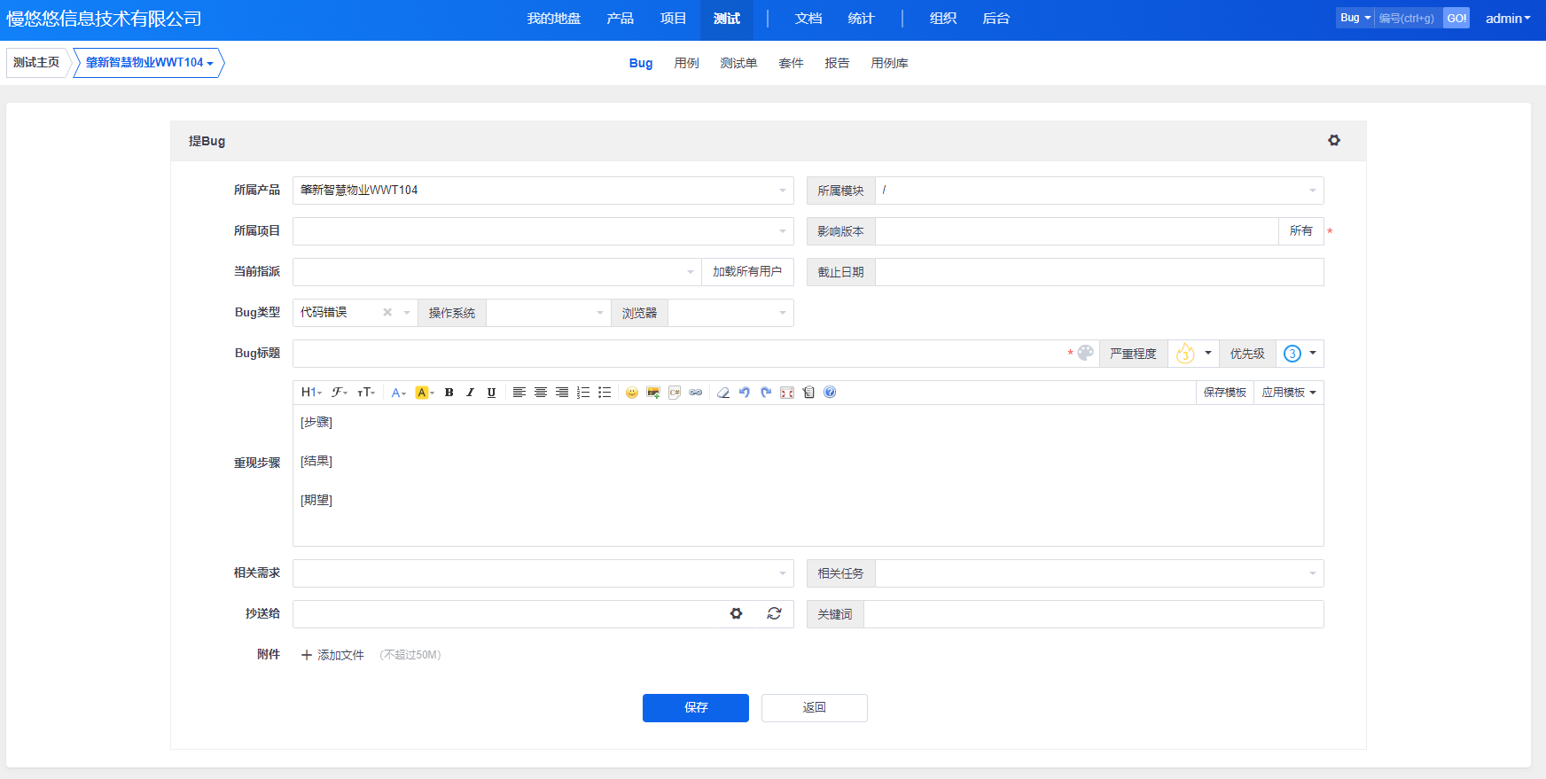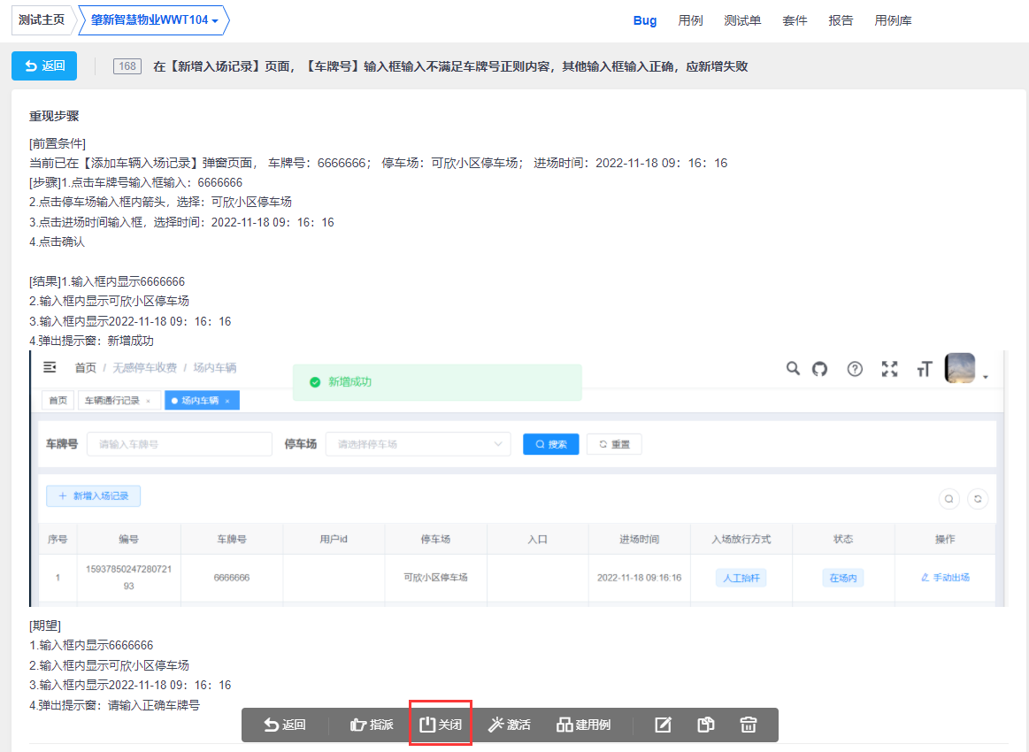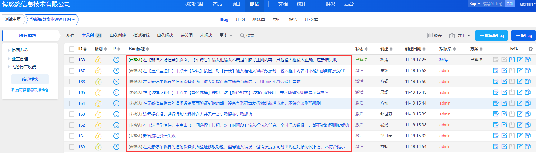 ① 点击【测试】→【bug】→【bug标题】进入bug详情页面: