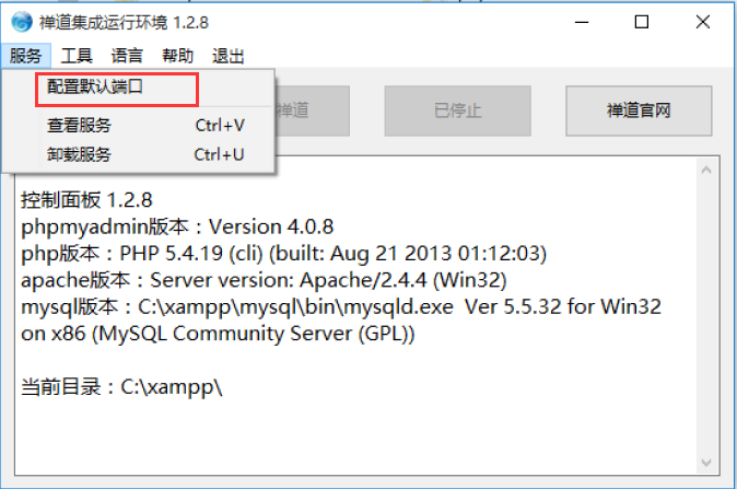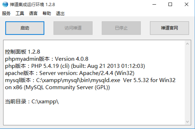 ③ 插件安装成功后,会自动开启禅道集成环境软件,如下图: