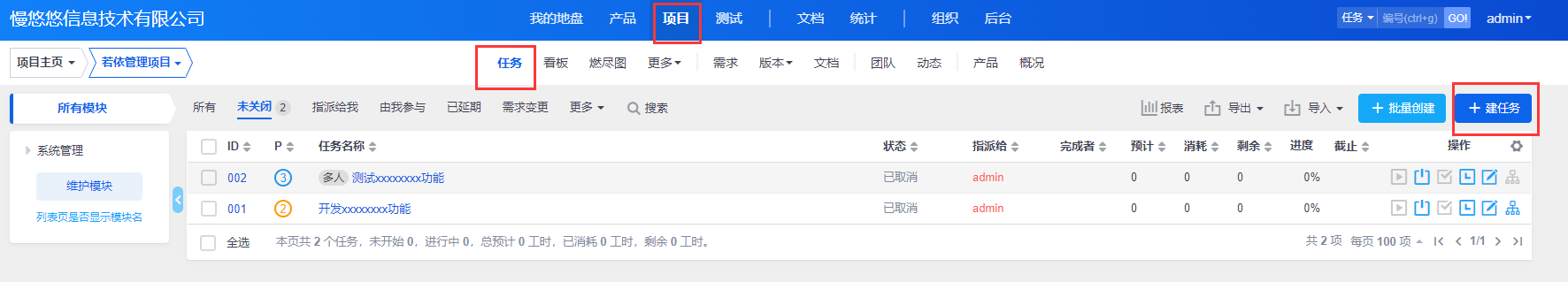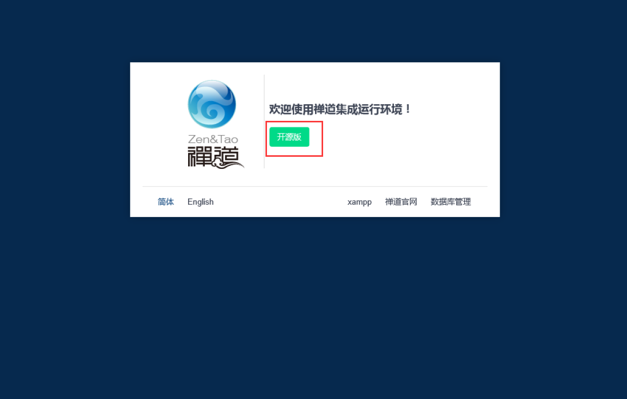 启动成功后,点击【访问禅道】即可唤起浏览器,进入禅道