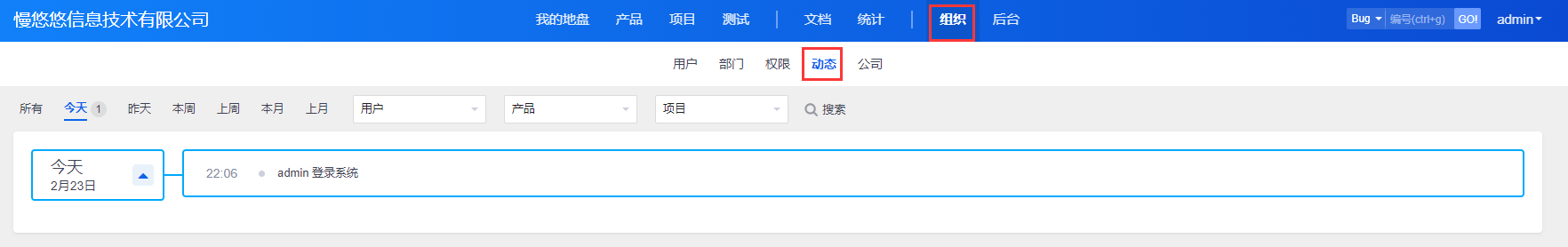③ 点击【组织】→【用户】→【动态】中,可以查看人员的动态: