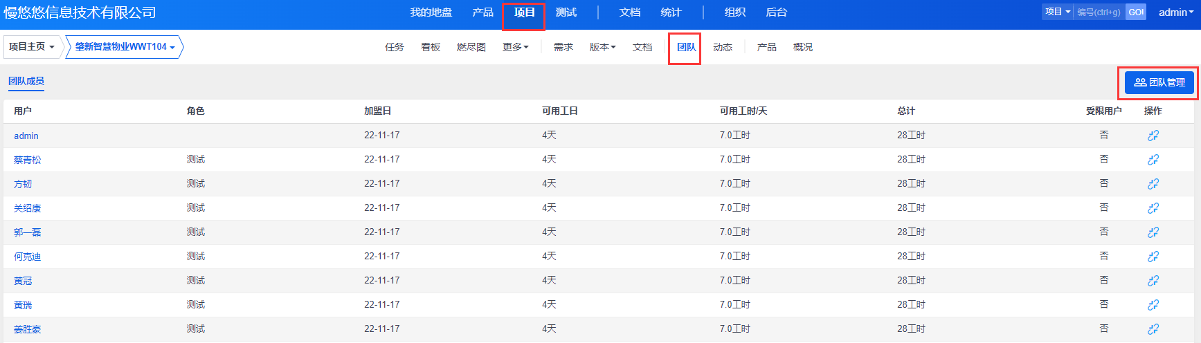 ① 进入【项目】→【团队】,即可给当前项目添加参与人员: