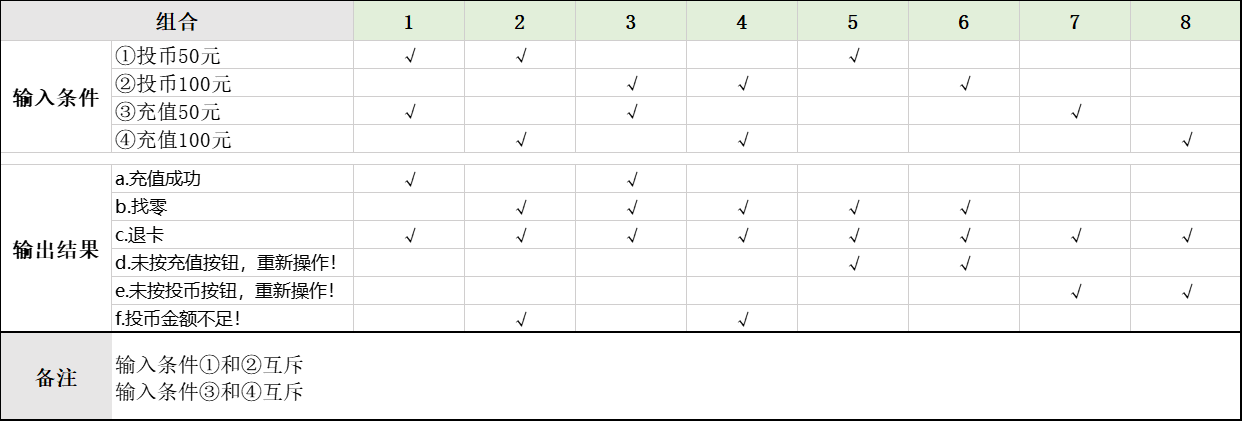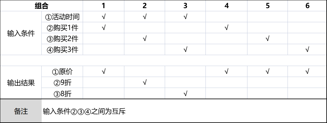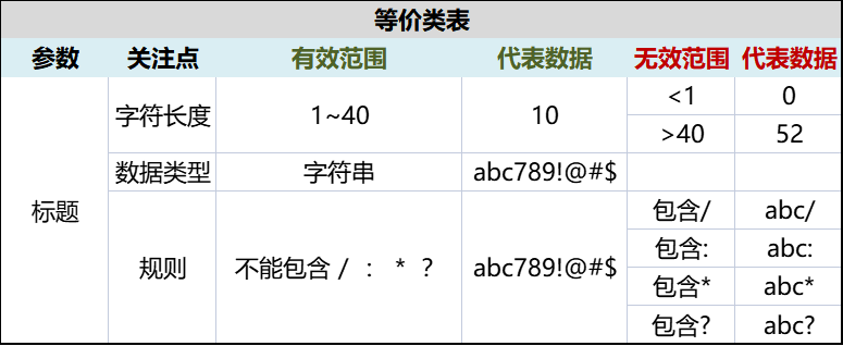- 有效等价类的数据可以组合起来,即:一条正向的测试用例可以包含多个有效等价类范围