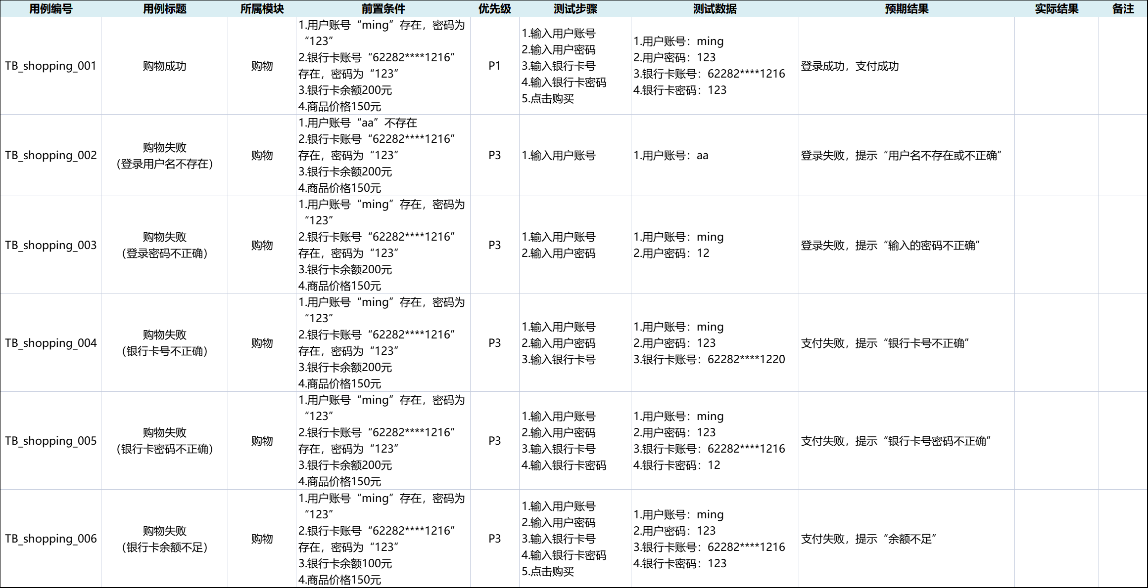 - 根据数据分析表编写测试用例(或思维导图用例)