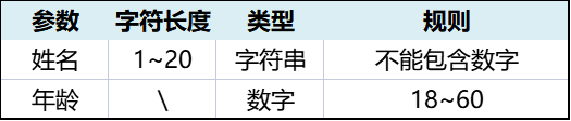 注意:“姓名”的“字符长度”>20 等同于 21,因此两条可合并为1条用例