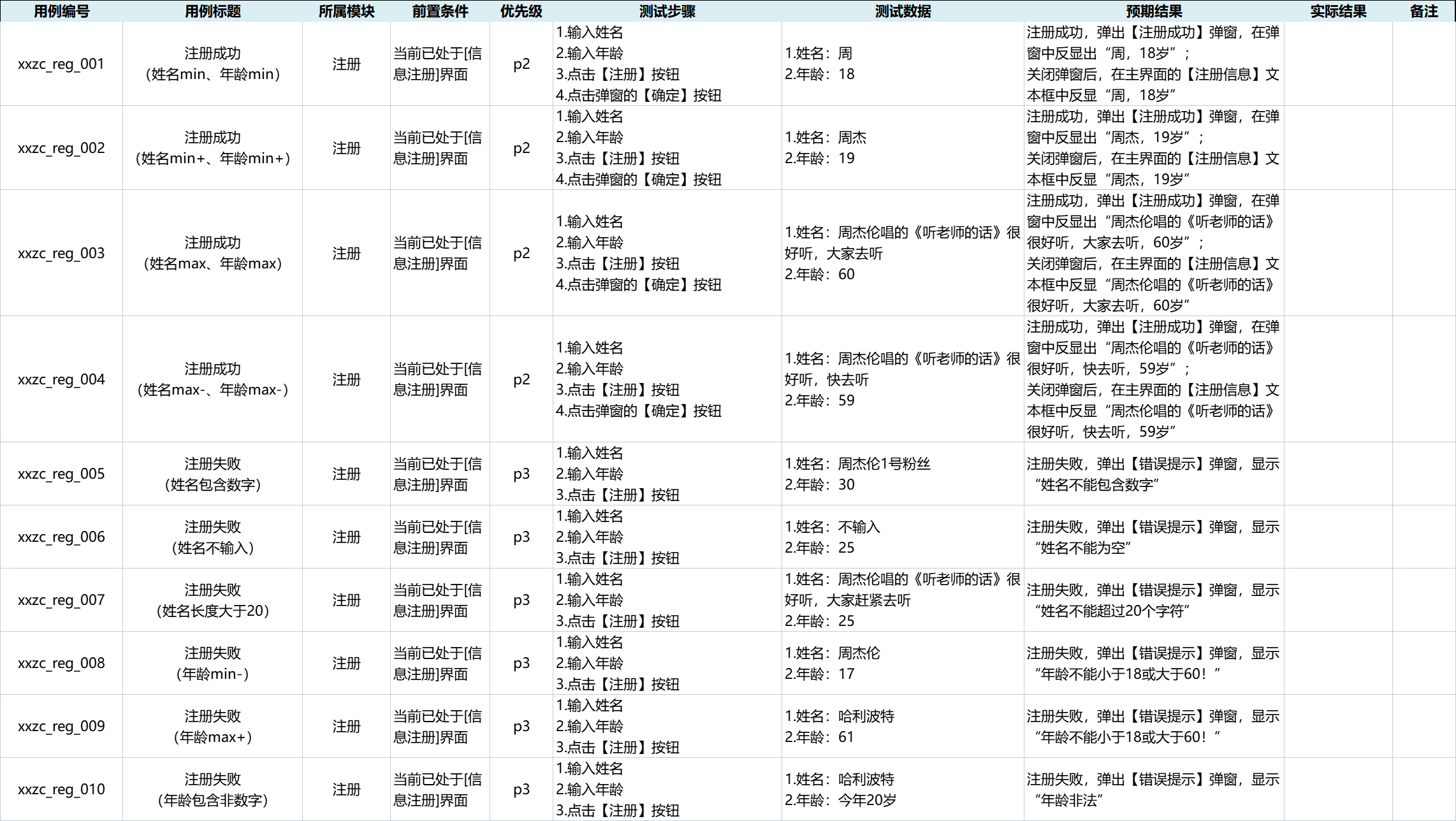 注意:“年龄”的“规则”<18 等同于 17,因此两条可合并为1条用例