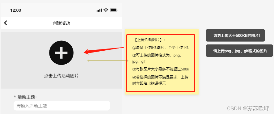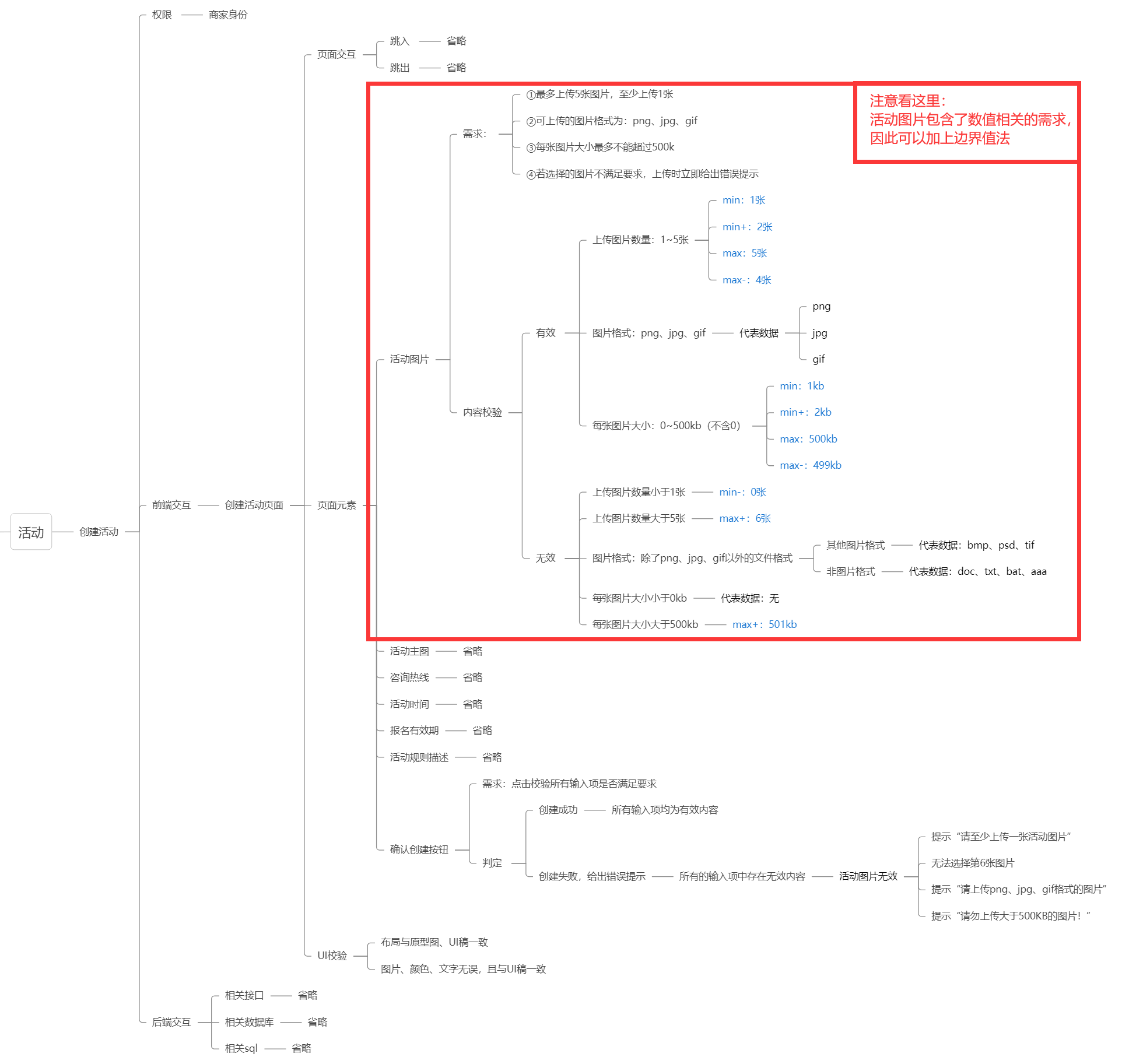 - 图片大小:需求说明“最上限”是500kb,但是没说“最下限”多少kb,又因为文件字节单位在kb之下的,还有B单位(即byte), 因此在未说明“最下限”的情况下,只要说明是大于0即可,不要较真非要找到一个最小值。