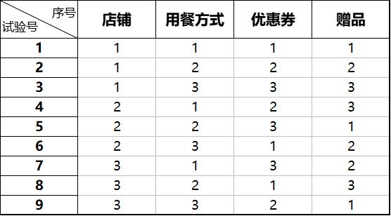 此时,k值有4个;m值有2个是3选项,有2个是2选项,期望(32×22),但没有该正交表,那么m值取最大值,m=3,选择L9(34)