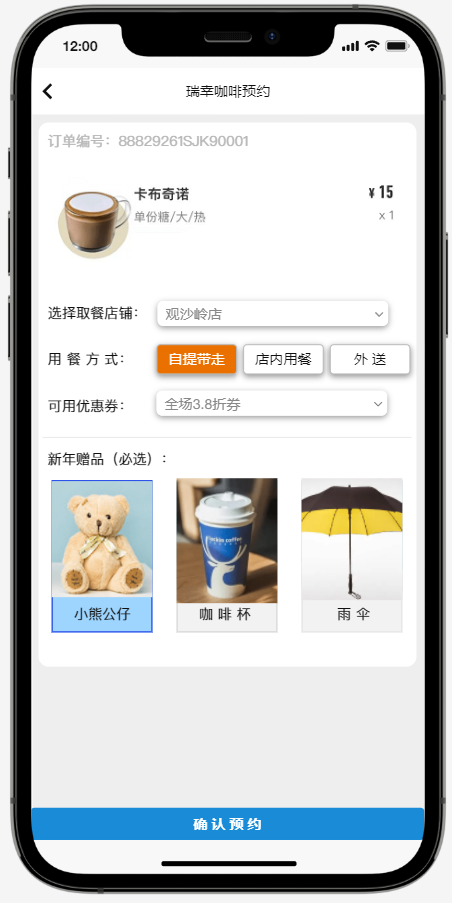 - 赠品:①小熊公仔、②咖啡杯、③雨伞