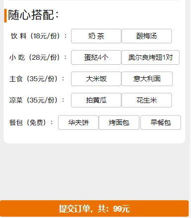 - 餐包:①华夫饼、②烤面包、③早餐包