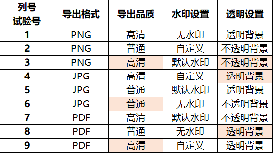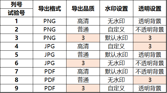 分析需求可发现,有4个控件,每个控件3个选项,则表示应该选择4因子、3水平的正交表;