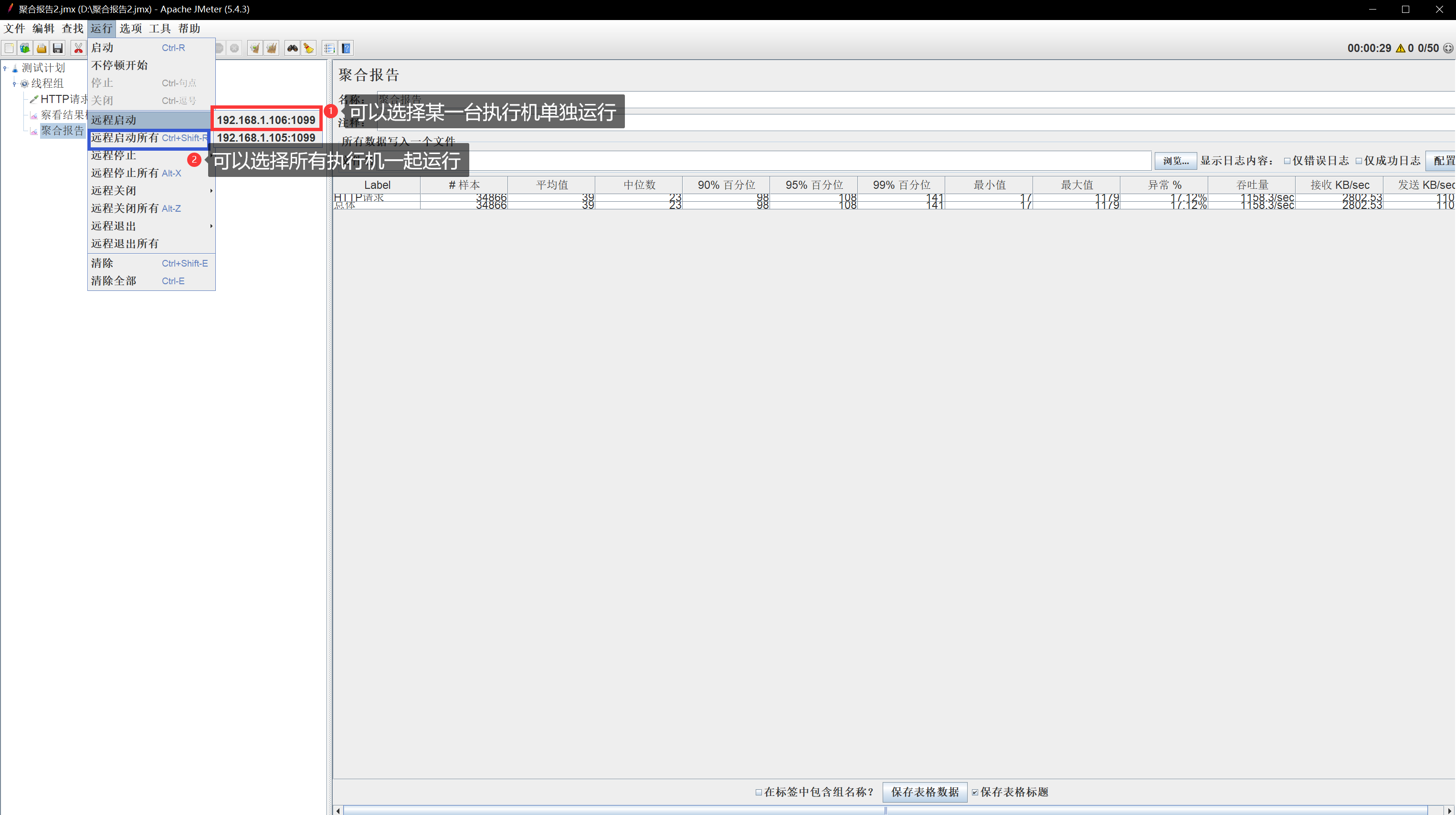 如果一台电脑跑jmeter脚本无法达到压测需求(一台电脑的配置有限,无法启动过量的虚拟用户),可以联合其他电脑一起对服务器施压