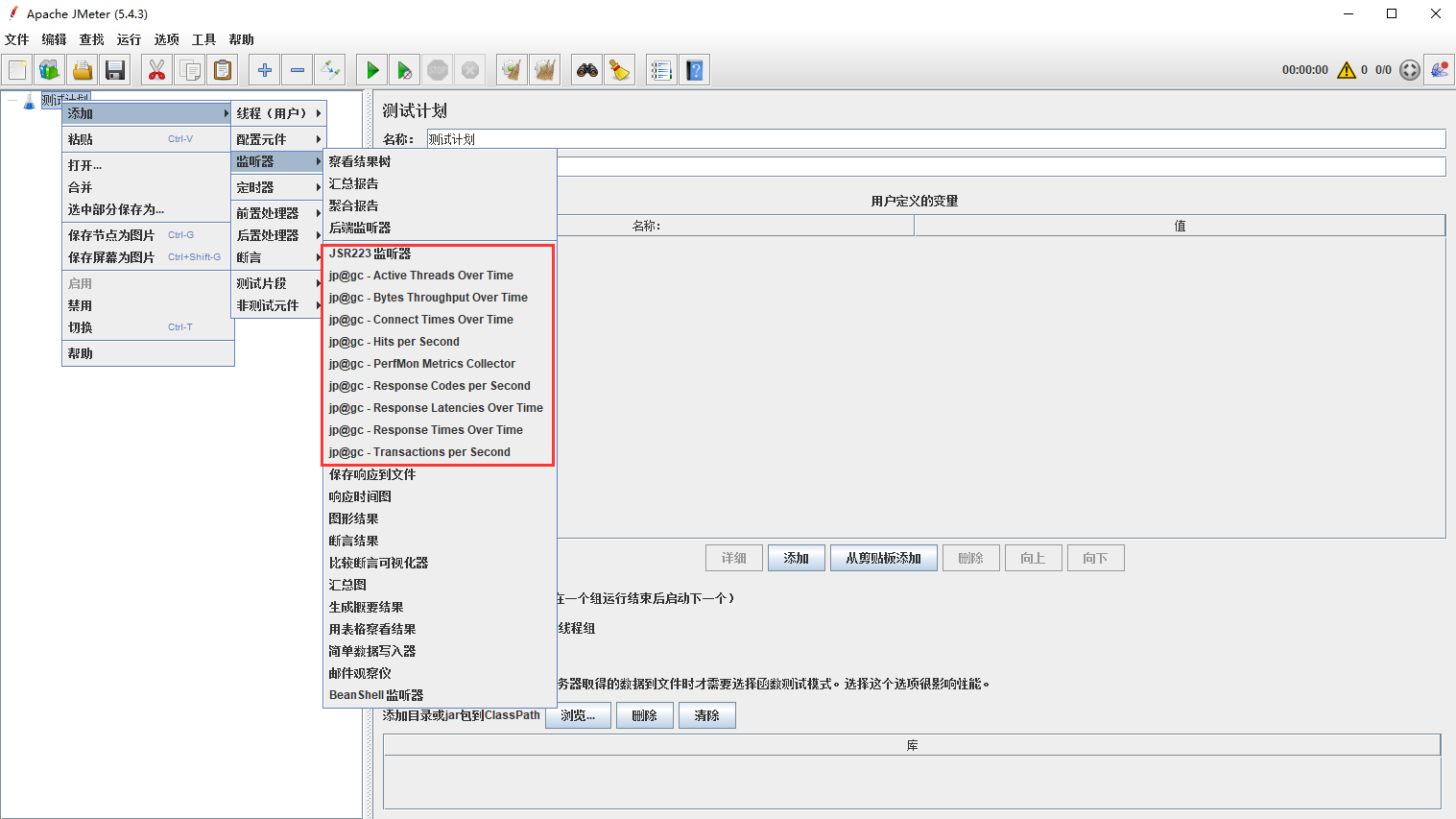 添加方法:线程组->监听器->jp@gc - PerfMon Metrics Collector