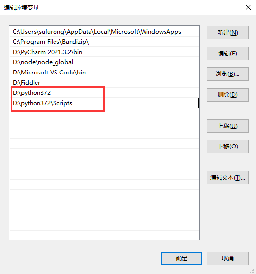 若没有则自行添加两个路径:① python安装路径 ②python安装路径下的Scripts文件夹