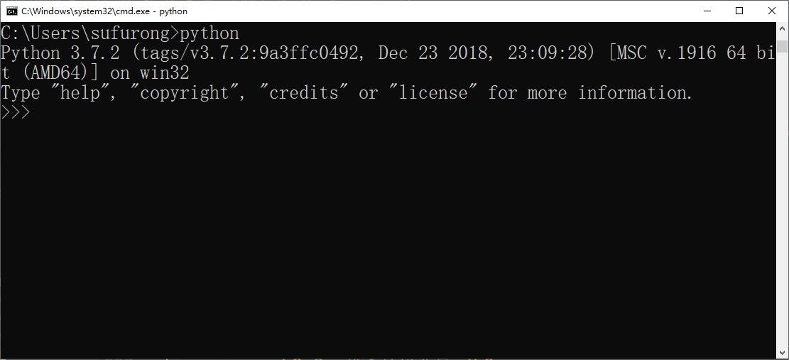 打开cmd命令窗口,执行命令“python”,出现如下信息,则安装成功: